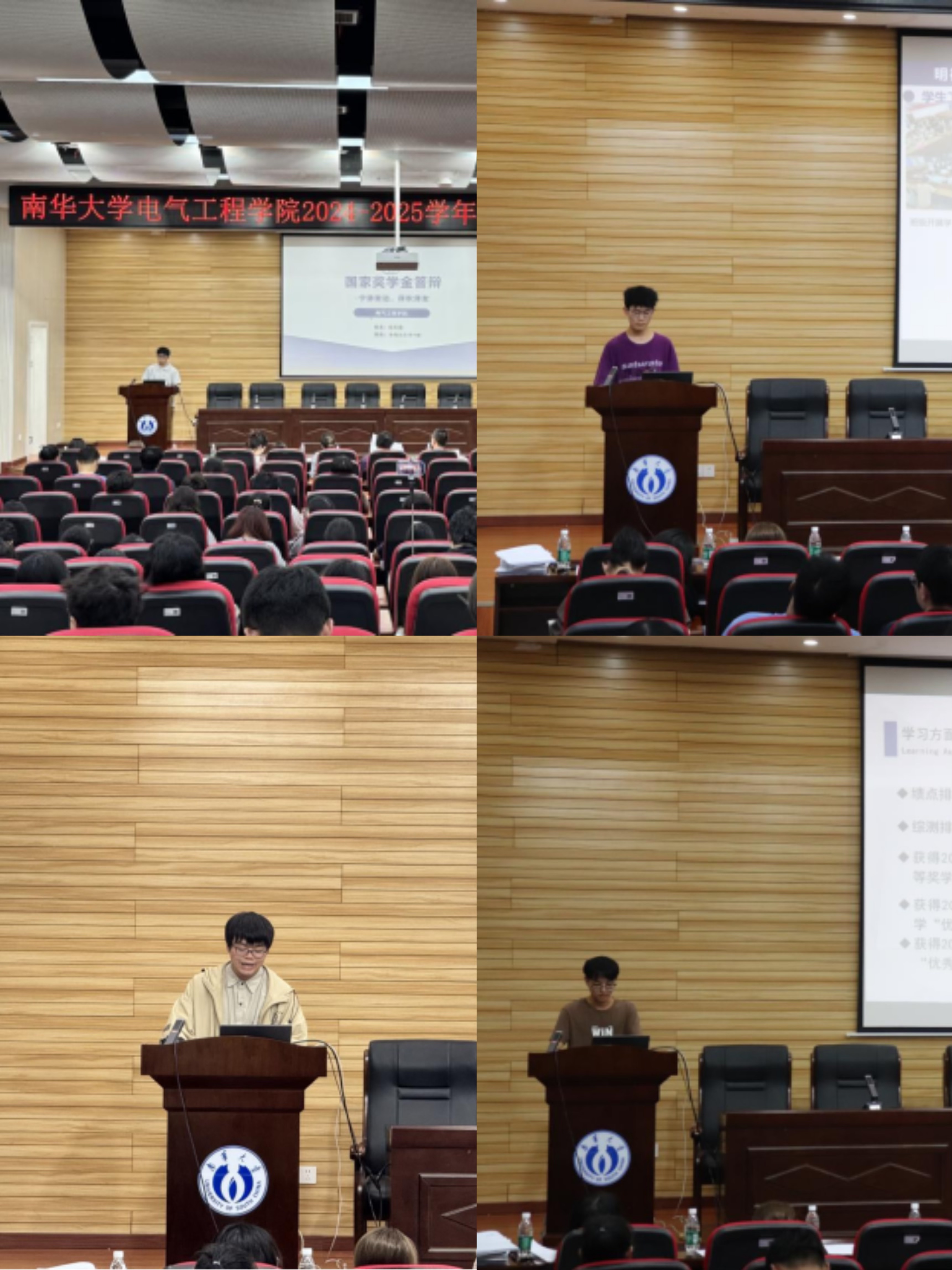 随后,来自不同专业的14名国奖候选人依次上台进行答辩展示。答辩分为个人陈述和评委提问两个环节。在陈述环节,同学们沉着自信、风采卓然,围绕学业成绩、科研竞赛、志愿服务等多个方面,全面展示了电气学子扎实的专业素养和积极向上的精神风貌。他们当中,既有扎根学生工作、热心服务师生的学生骨干,也有专注科研创新、屡获佳绩的学术新锐,还有积极投身社会实践、传递正能量的志愿先锋。在提问环节,候选人针对评委提出的专业领域与个人发展相关问题,思路清晰、对答从容,现场气氛热烈、秩序井然。