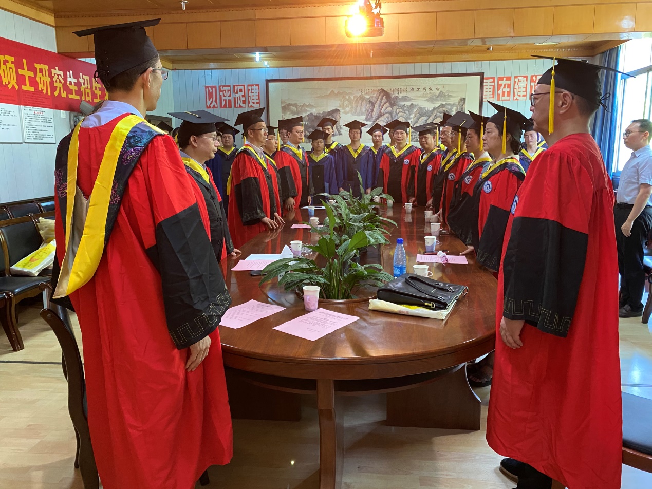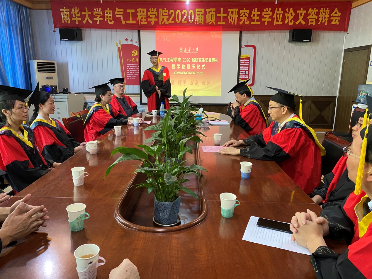 6月12日上午,南华大学内射中出喷高清2020年研究生毕业典礼暨学位授予仪式于内射中出喷高清四楼402会议室隆重举行。出席此次典礼人员有:研究生院院长王新林教授、内射中出喷高清全体院领导、学位点负责人、学工室负责人、研究生支部书记、研究生导师、研究生教辅人员以及全体2020年毕业研究生。毕业典礼与学位授予仪式由盛义发副院长主持。