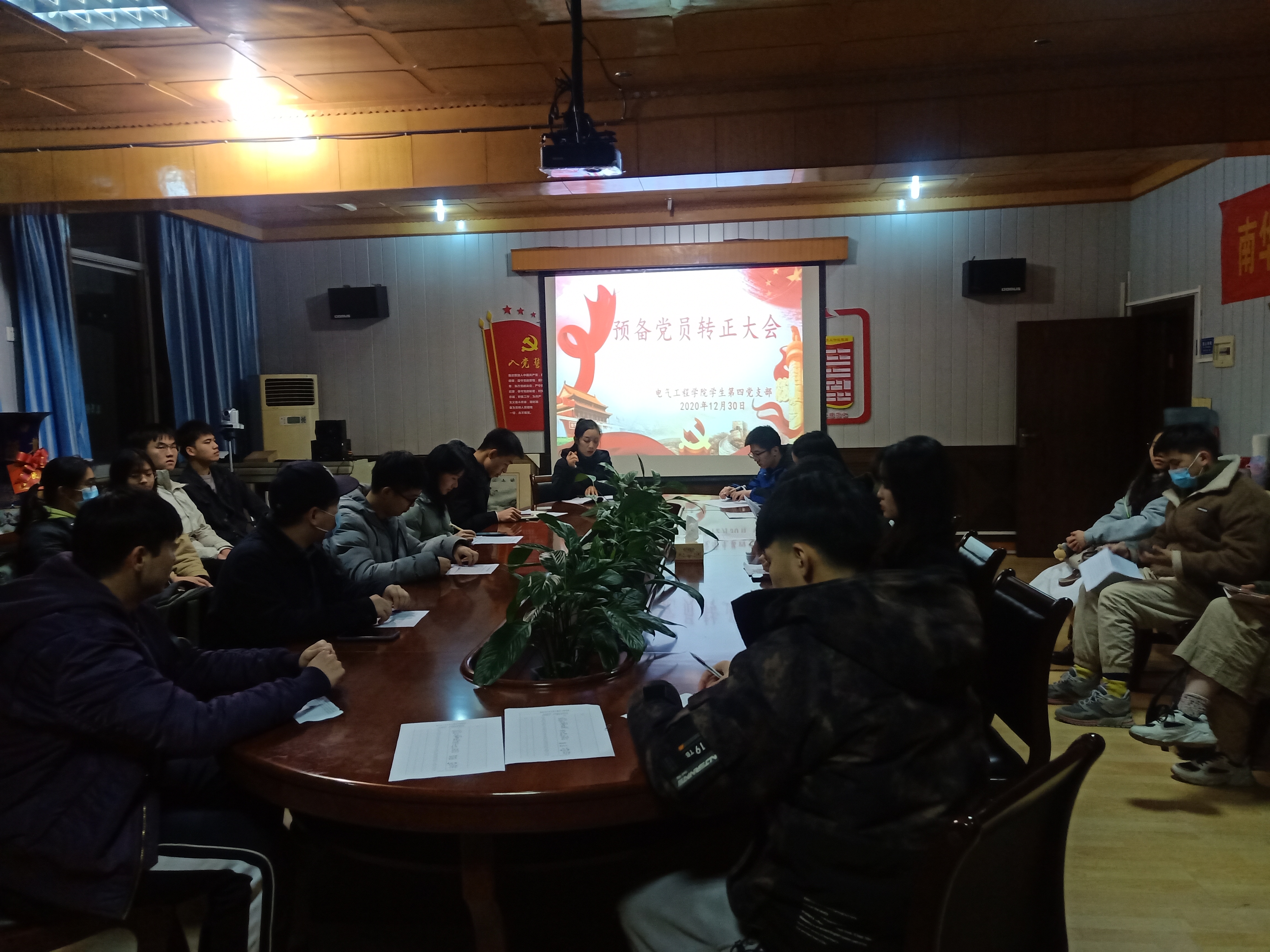 2020年12月30日晚上,内射中出喷高清学生第四党支部在电气楼402会议室召开了支部大会。参与会议的有支部全体党员,应到正式党员6名、预备党员25名,实到正式党员6名、预备党员23名,请假2名。本次会议主要内容为讨论谭方宁等9名预备党员同志的转正问题。学生第二党支部书记周珍珍老师和学生第四党支部副书记龙杨帆同志出席此次会议,会议由党支部宣传委员李亚鑫同志主持。