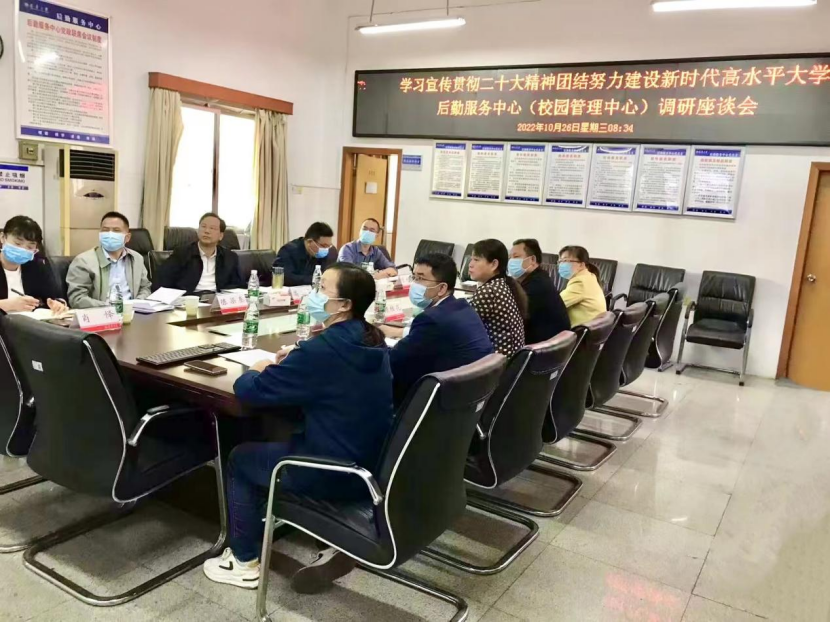 10月25日至27日,校党委书记高山深入职能部门和二级学院开展“学习宣传贯彻党的二十大精神 团结努力建设新时代高水平大学”专题调研工作。他强调,学习宣传贯彻党的二十大精神是当前和今后一个时期的首要政治任务。要学报告、读原文,感悟思想伟力,汲取奋进力量,特别是要把党的二十大报告中具有重要指导意义的部署和要求落实到学校改革发展、安全稳定的各领域各方面;要突出导向、把握关键,牢记空谈误国、实干兴邦,以昂扬奋斗的精神、改革创新的办法、求真务实的作风贯彻落实党的二十大精神,坚定不移把思想和行动统一到党中央精神上来,落实到实际工作中去。各单位分管校领导出席调研座谈会。