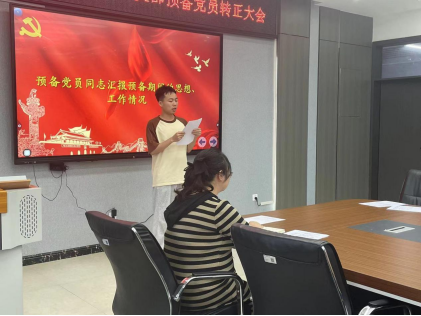 会议第一项,六名预备党员依次在大会上汇报自己在预备党员期间的思想和工作情况。并由其第一、第二培养人分别向大会报告预备党员在预备期间的表现,对其是否能发展为正式党员表明意见。