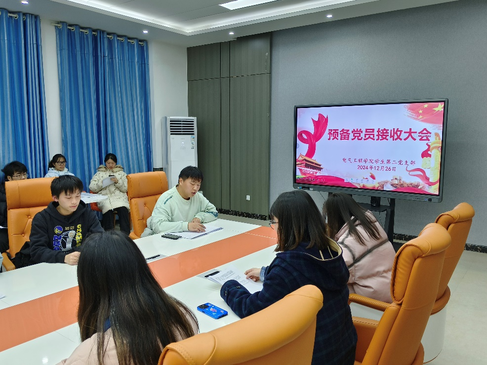 12月26日,南华大学内射中出喷高清学生第二党支部于电气楼A514会议室召开预备党员接收大会。本次大会主要讨论接收蔡明熹等六位同志为中共预备党员,支部书记周珍珍老师及全体学生党员参会,会议由党支部副书记李秋衡主持。